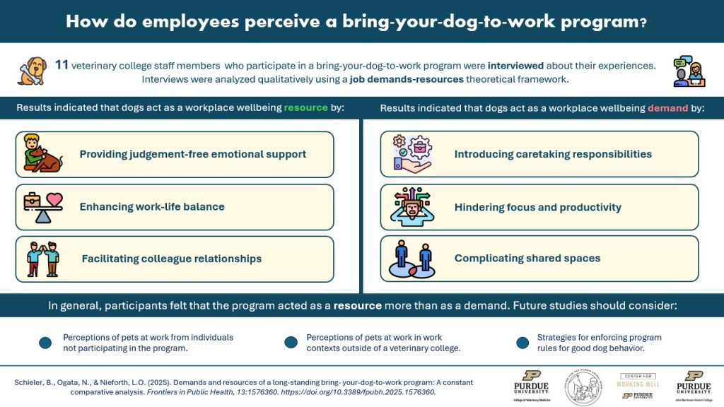 Schieler, B. Ogata, N., Nieforth, L.O. (2025). Demands and Resources of a Long-Standing Bring-Your-Dog-to-Work Program: A Constant Comparative Analysis. Frontiers in Public Health. https://doi.org/10.3389/fpubh.2025.1576360